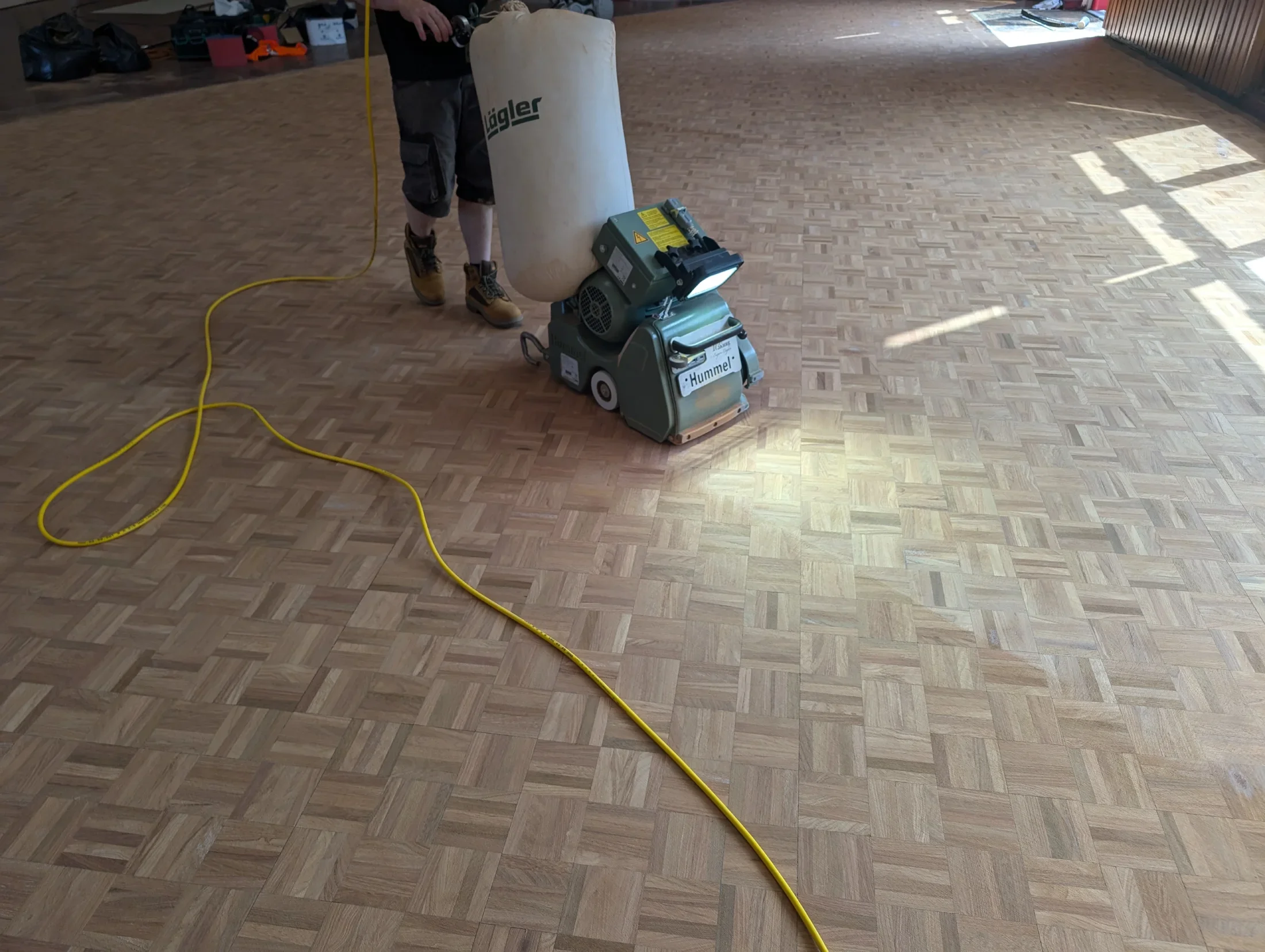 Full parquet floor restoration during summer holiday scheduling with minimal disruption.